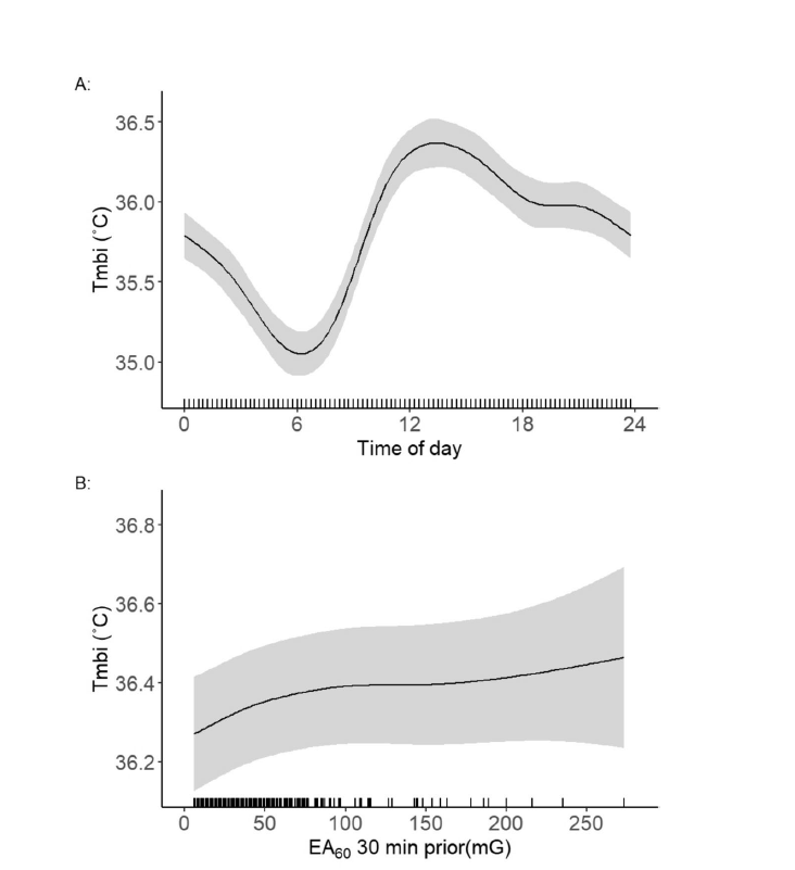 體溫 (Tmbi) 被證明是晝夜的,并且與活動