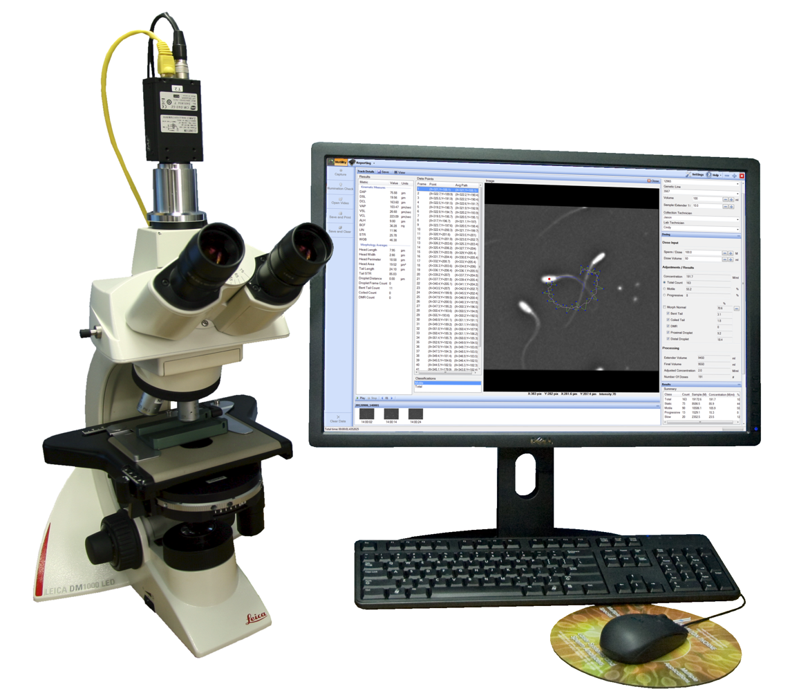 專用的精子軟件分析系統,通過顯微鏡、攝像頭將精子的信息傳輸給電腦里的SCA軟件可自動分析出精液樣本里精子的密度、活力、活率、精子的運動軌跡顯示、精子的畸形率、精子頂體分析、精子DNA完整性分析等指標;并自動計算添加精液稀釋液計量和分裝精液份數;
