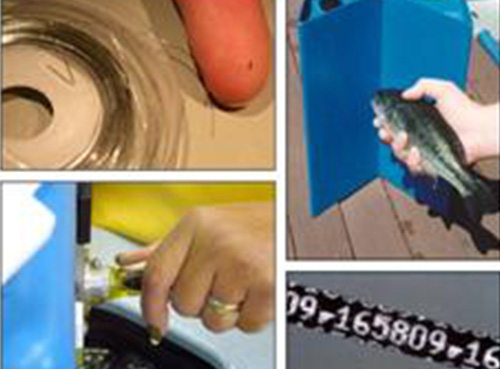 十進制編碼魚類標記線(CWT)是一段磁化的不銹鋼絲,直徑0.25mm,標記線上刻有幾排數字,用來表示指定的一批或單個編碼。標記線從整卷鋼絲上切割下來,然后被植入魚類皮下組織。標記線的標準長度是1.1mm。對非常小的動物,可以用0.5mm長的標記線。對于大一點的動物,可以用1.6mm長或者2.2mm長的標記線。鮭魚主要在口鼻部標記,但是其他動物主要在臉頰出作標記。